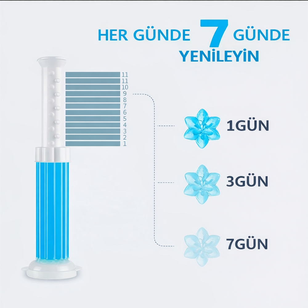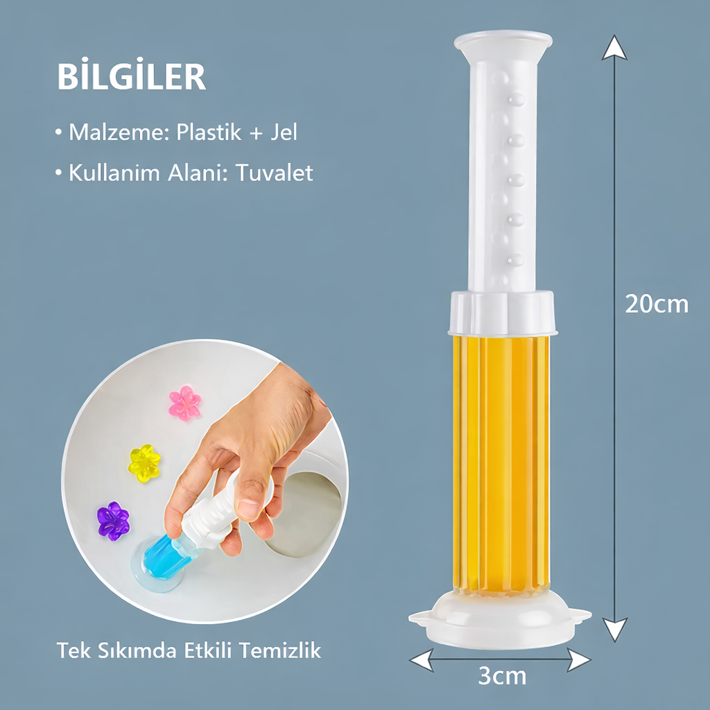 Eski tip mikrop yuvası plastikleri unutun. Temassız aplikatörümüzle hijyenik ve estetik bir deneyim sunuyoruz. Her sifonda aktive olan formül, kireçle savaşırken banyonuzu ferahlatır.
